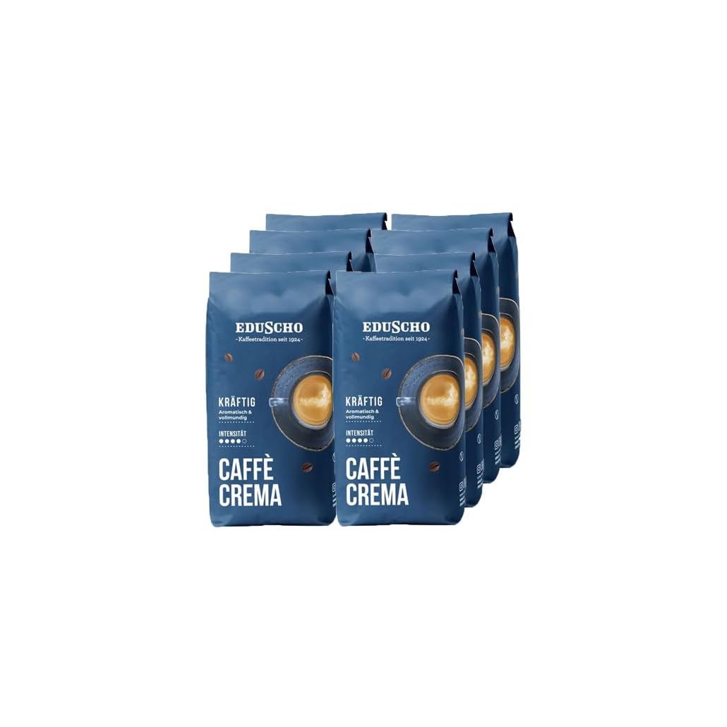 Der Eduscho Caffè Crema Kräftig überzeugt mit seinem intensiven Aroma und seinem vollmundigen Geschmack. Diese Mischung aus sorgfältig ausgewählten Kaffeebohnen wurde speziell für Liebhaber eines kräftigen Caffè Crema entwickelt. Das Set mit 8 x 1 kg ist ideal für Vieltrinker, Büros oder Gastronomiebetriebe, die Wert auf Qualität und Konsistenz legen.